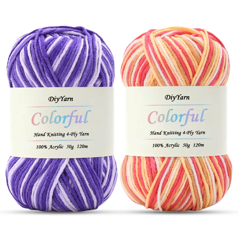 Our **4-Ply Colorful Hand-Knitting Acrylic Yarn** is soft, durable, and perfect for creating **gradient color effects**. Each skein is **50g ±, 120m ±**, providing consistent thickness and smooth texture for knitting and crochet projects.