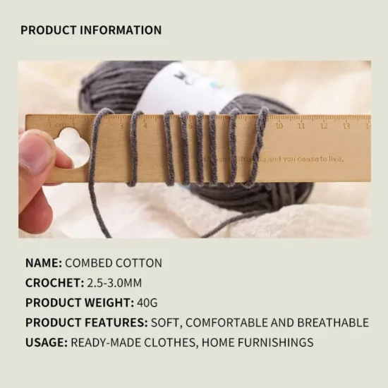 The 5-Ply Combed Milk Cotton Yarn is a soft, lightweight blend of 60% cotton and 40% acrylic, offering both breathability and durability. With 34 elegant colors to choose from, this yarn is ideal for baby clothes, summer garments, and handmade accessories. Designed for comfort and creativity, it’s suitable for beginners and advanced makers alike.