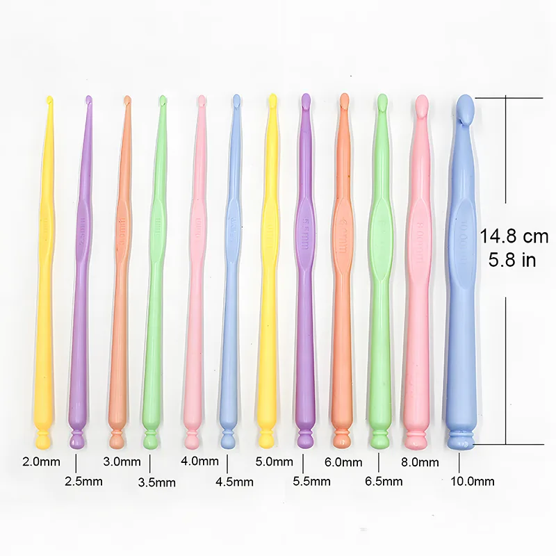 This colorful 12-piece crochet hook set is designed to bring joy and comfort to your crochet journey. The vibrant colors make each project more fun, while the ergonomic plastic design ensures lightweight handling — ideal for daily crafting, teaching, or gift-giving to crochet lovers.